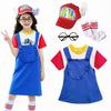 1* Cosplay-Kostümset(Overall + Hut + Schnurrbart)
