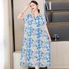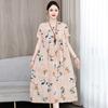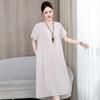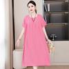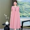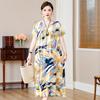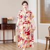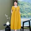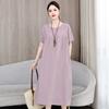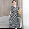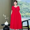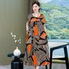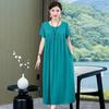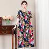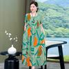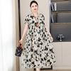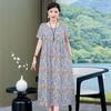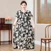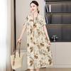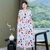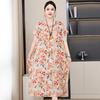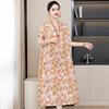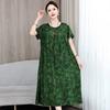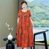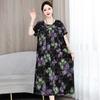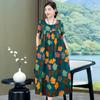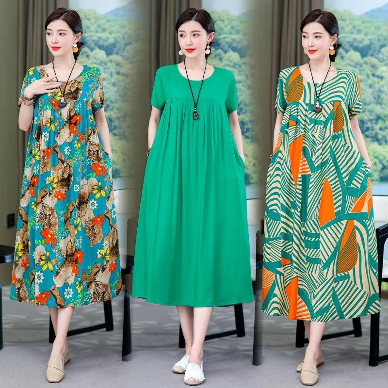 2 Neues hochwertiges florales Baumwoll-Seiden-Kleid für Damen-Sommer-Temperament, Bauchbedeckung für Mütter, große Größe künstliche Baumwolle langer Rock