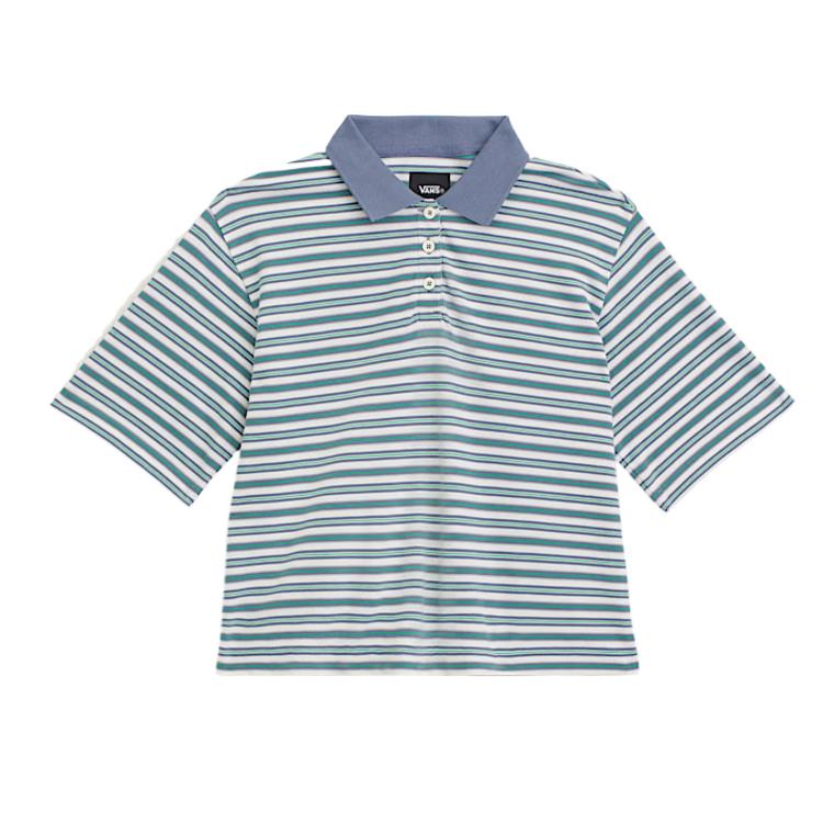 Vans Color Block Striped Button Short Sleeve Polo Shirt Women tops VN0010AVFOI