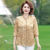 Damenbluse im chinesischen Stil mit Gold-Schmetterlings-Blumenprint, mittellangem Ärmel