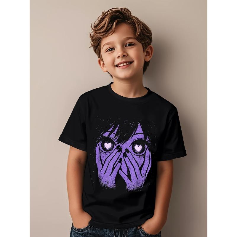 European sizes Soft Breathable Anime Eyes Girl Hearts Manga Otaku Grunge Alt Goth Aesthetic T-Shirt for Kids | Boys & Girls Graphic Tee