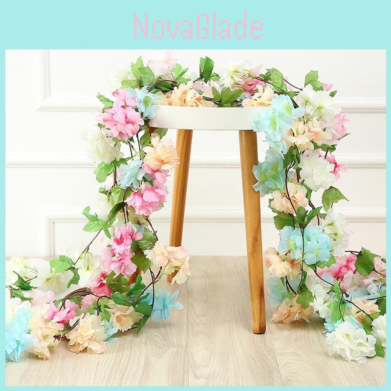 Elegante künstliche Kirschblüten-Girlande Efeu-Ranke für Heimdekoration und Festlichkeiten