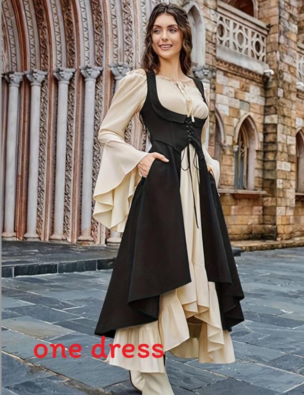 Dieses im Vintage-Stil gehaltene Damenkleid im Renaissance-Stil verfügt über ein Wickeldesign mit offenem Kragen und ärmellosem Schnitt, was einen einzigartigen künstlerischen Look verleiht.. Hergestellt aus Polyester mit gesammelter Handwerkskunst, misst es etwa 52 Zoll in der Länge und verfügt über eine mittelhohe Taille mit Patchwork-Elementen.. Erhältlich in den Größen S bis XXL, eignet es sich für künstlerische Veranstaltungen, Mottopartys oder Streetwear.. Mit einem feuchten Tuch abwischen, um das Aussehen zu erhalten.
