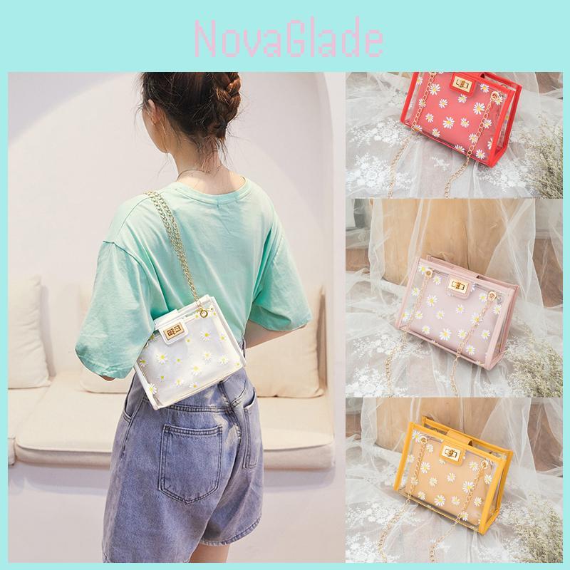 Elegante transparente Umhängetasche mit Gänseblümchen für Damen mit Kette