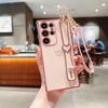 Geeignet für Samsung S25 Ultra Handyhülle S24FE Handschlaufe Halterung Lanyard A56 Galvanisierte Liebes-Schutzhülle