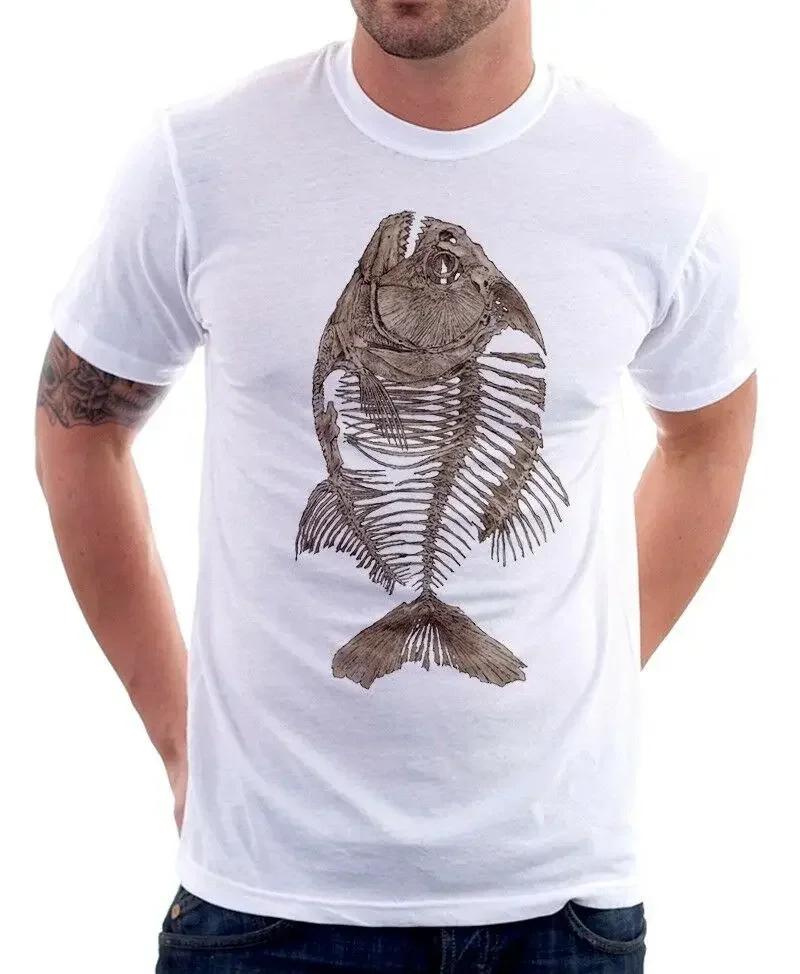 Piranha Fish Skeleton Bone Angler White TShirt Cotton ONeck Short Sleeve Mens T Shirt New Size S3XL
