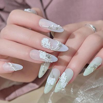 24 Stück Frischer und sanfter Wind Tragen Nagelkunst Lange Perle Entladen Falsche Nagelstücke