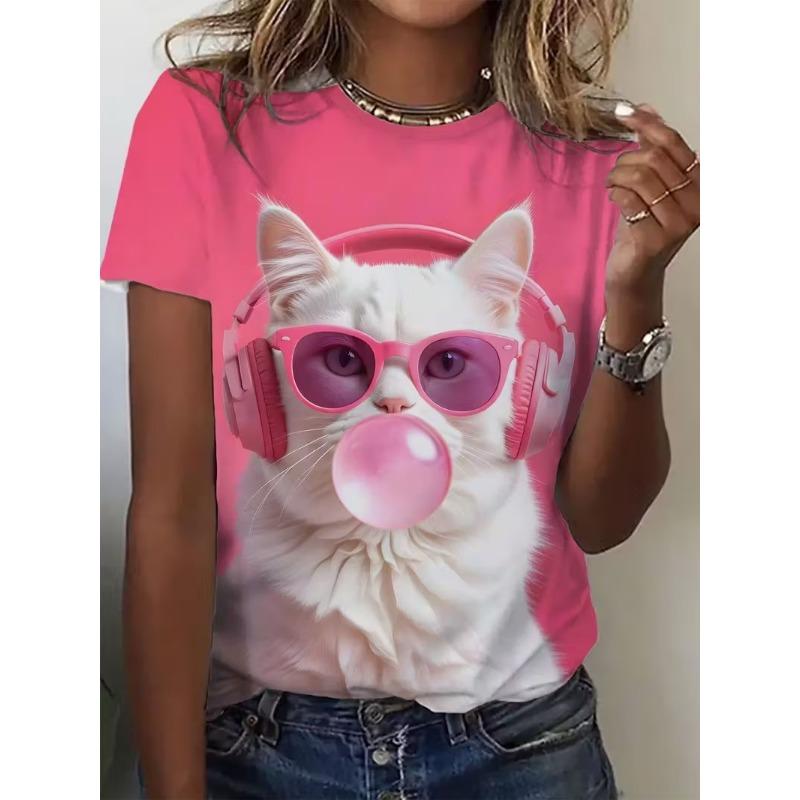 New trendy animal bubble-blowing 3D printed fun T-shirt casual short-sleeved dog and cat cartoon T-shirt