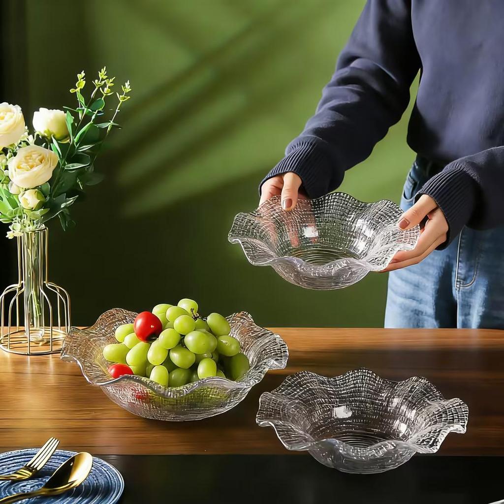 Luxuriöses Europäisches Glas Obstschalen-Set: Unregelmäßiges Spitzendesign für Zuhause & Kaffeetisch