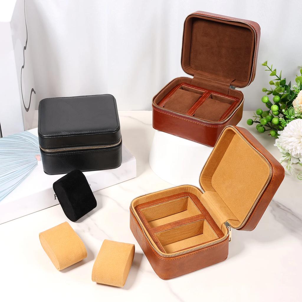 2-Schlitz Uhrenbox Organizer Uhrenrolle Reiseetui Tragbar Vintage Leder Uhrenaufsteller Aufbewahrung Herren Damen Geschenk