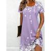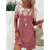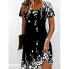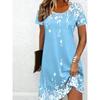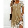 Damen Casual Blumenmuster Minikleid Vintage Rundhals Kurzarm Modisch Boho Freizeitkleider
