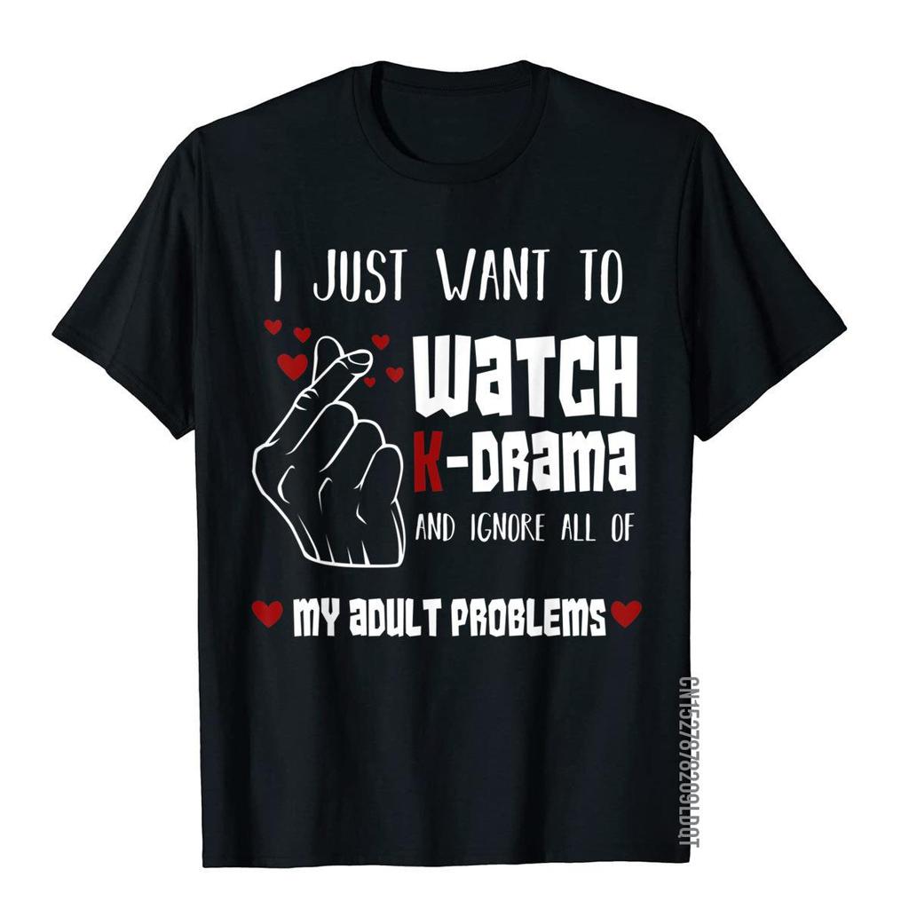 Ich will nur KDrama lustig Korea Liebhaber T-Shirt T-Shirts Oberteile Tops Aktuell Baumwolle Preppy Stil Klassisch Herren