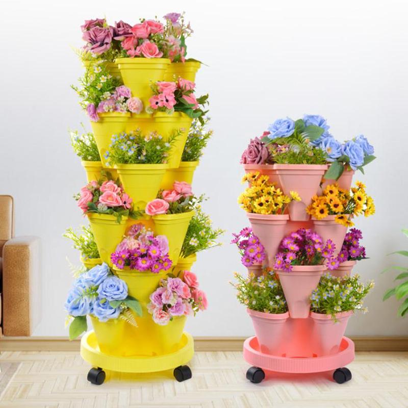 Vertikaler Turm Stapelbarer Blumentopf Kunststoff Mit Beweglichen Rollen Blumentopf Mehrschichtig Erdbeer Pflanzturm Hausgarten