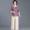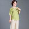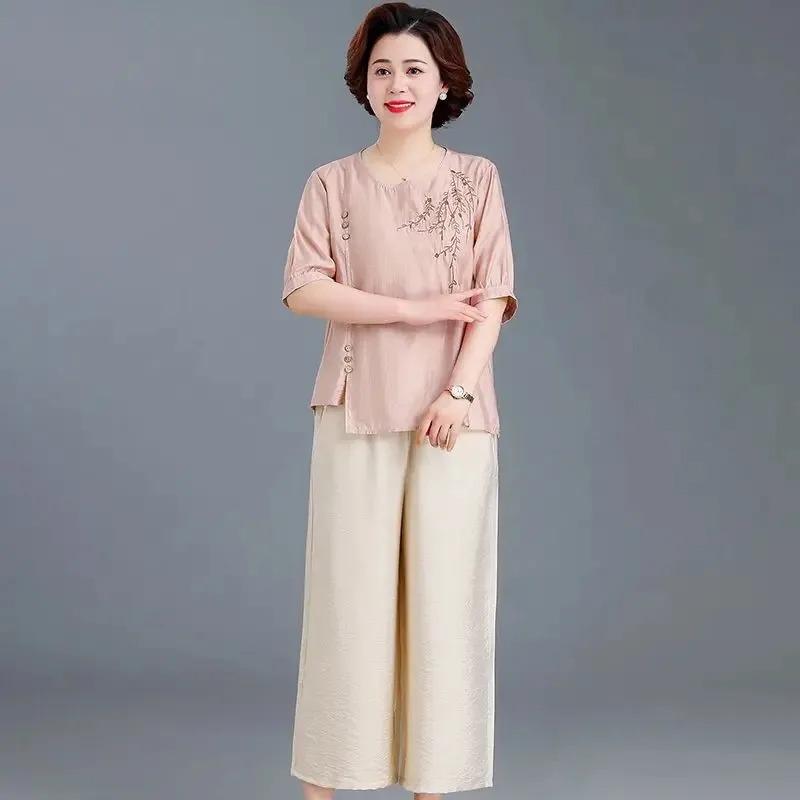 Sommer-Kurzarm-Baumwoll-Leinen-T-Shirts für Mütter, lockere bestickte Oberteile für Frauen mittleren Alters und ältere Frauen