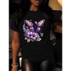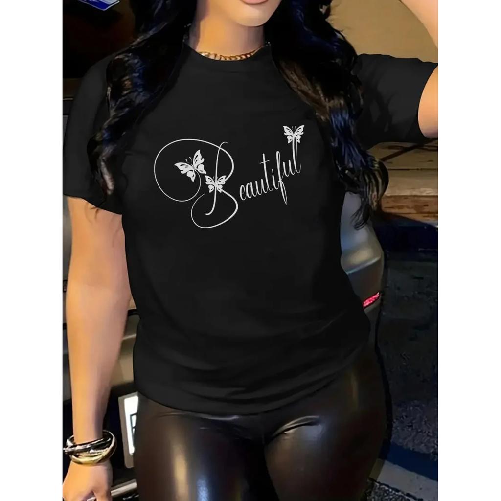 Beautiful Butterfly Print T-Shirt Soft Comfortable Women Short Sleeve Crew Neck Tee for Summer