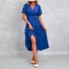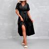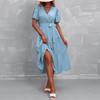 Modisches Damen Sommerkleid in Farbe mit V-Ausschnitt, kurzen Ärmeln und Bindung für den Strandurlaub