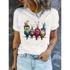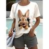 Sonnenblumen- und Busmuster Rundhals Übergröße Damen T-Shirt Kurzarm Trenddruck Elastisches Halbsleeve T-Shirt