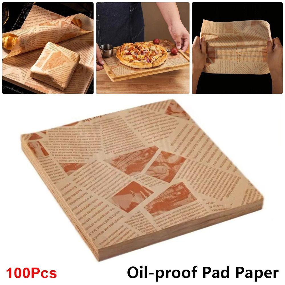 100 Stück Bedrucktes ölbeständiges Pad-Papier 15/18/22/25/30 cm Einweg-Backpapier Wachspapier für Lebensmittel Backen Grillen Burger Pommes