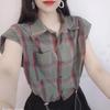 Retro Kariertes Kurzarmhemd für Damen Sommer Neues Temperament Hemd Slim Fit Top