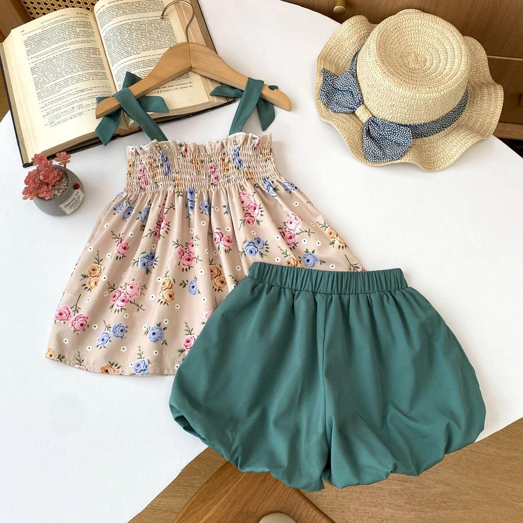 Introduce your little one to the world of style with this adorable 2-piece ensemble, perfect for warmer days. The set includes a charming spaghetti strap top adorned with a delightful print and a cute bow detail, paired with bloomers shorts for a complete look. Made from high-quality polyester, this outfit offers both comfort and durability, allowing for ease of movement while retaining its vibrant appeal. Ideal for casual outings or playdates, this fashion set will keep your girl looking chic and feeling comfortable.