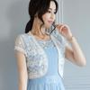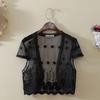 Experience the elegance and lightness of this exquisite short sleeve bolero cardigan shawl, perfect for adding a touch of sophistication to your summer wardrobe. Crafted entirely from delicate lace, this piece features a thin, airy design that keeps you cool and comfortable in warmer weather. The V-neckline enhances its feminine appeal, making it an ideal choice for layering over your favorite dresses or tops. Timeless and stylish, this cardigan shawl effortlessly complements any ensemble, offering a chic solution for casual outings or special occasions. Designed specifically for women, it combines versatility with a graceful, luxurious look.