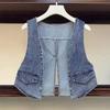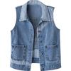 This slim-fit sleeveless gilet is perfect for adding a touch of sporty elegance to your spring and autumn wardrobe. Crafted from high-quality denim, it features a unique striped patchwork design that adds a dynamic and fashionable edge. The halter neckline enhances its contemporary style, making it a versatile layering piece for various occasions. Ideal for fashion-forward women, this denim vest seamlessly combines comfort and trendiness, providing a chic and casual look.