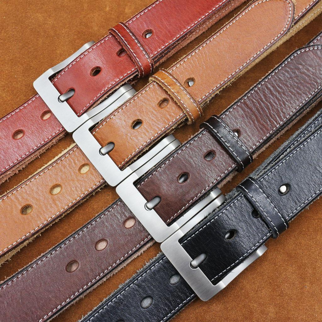 Herren Gürtel aus genähtem Rindsleder, Dornschließe, Echtes Leder, Lässiger Retro-Stil für Studenten, Erwachsene und Jeans