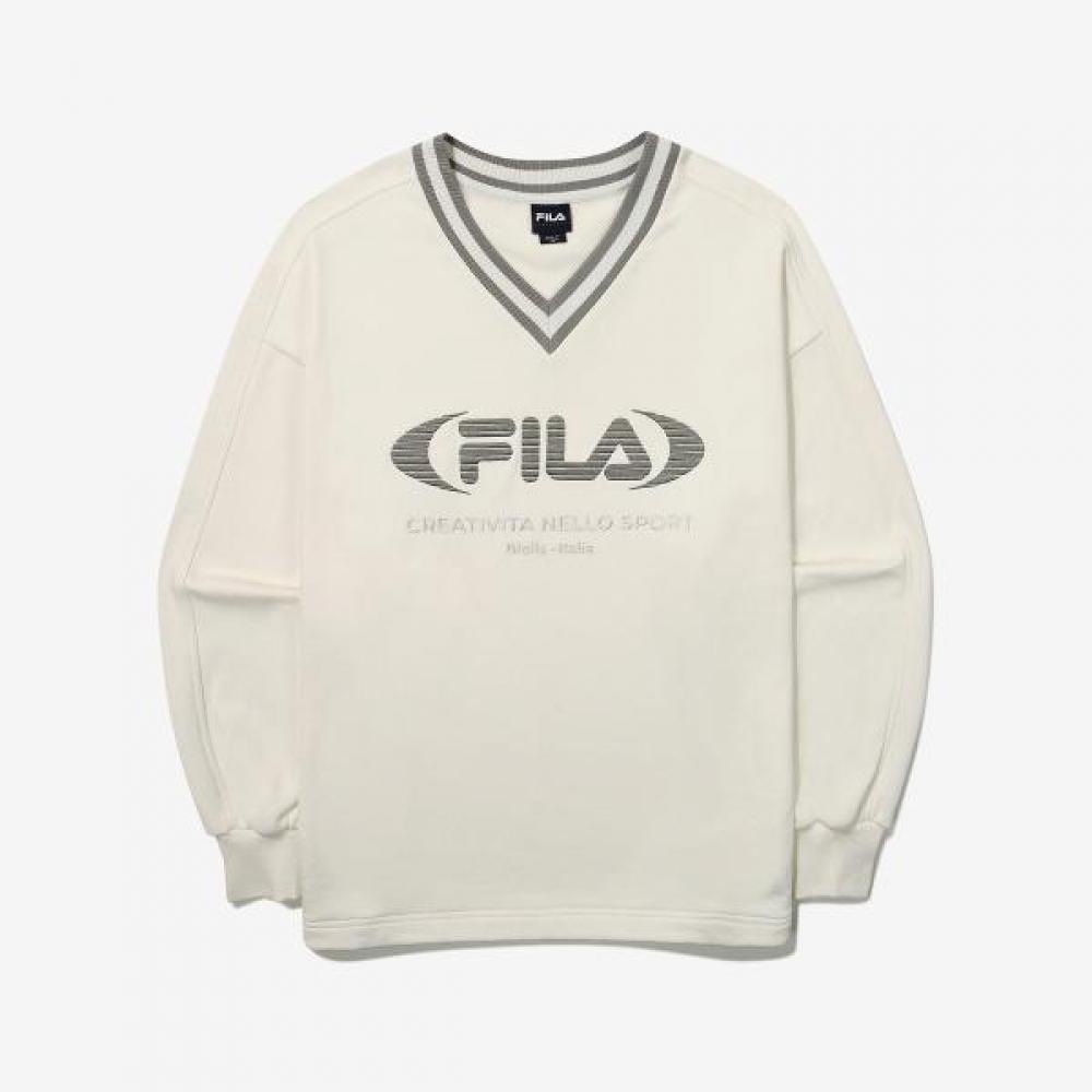The FILA V-Neck Logo Sweatshirt features a striped point on the neck and a modern interpretation of the FILA heritage logo. Made from a cotton and polyester blended terry or French terry material, it provides a soft touch and excellent breathability. It has great elasticity and shape stability, offering a comfortable fit. Suitable for wear from transitional seasons, available in White.