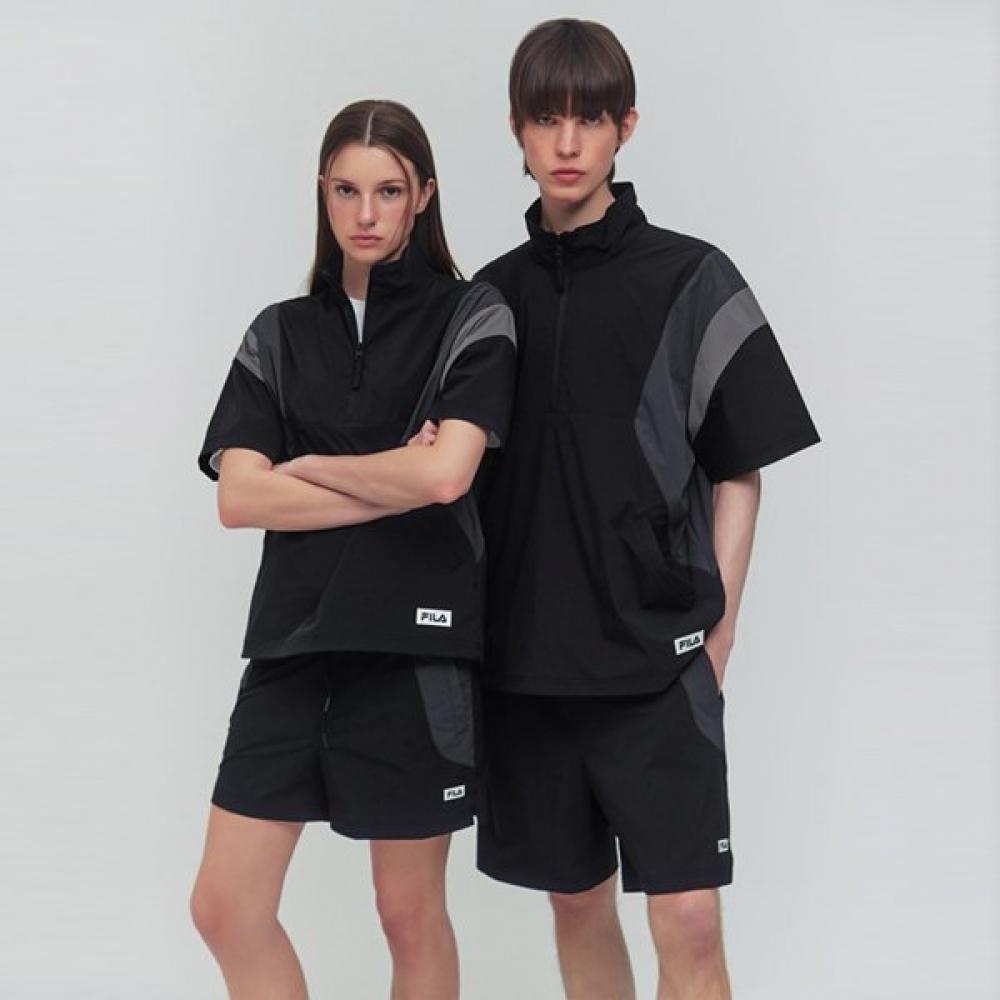 The FILA Lightweight Stretch Short Sleeve Anorak is made from lightweight nylon fabric, providing excellent elasticity and comfort. The stylish black color makes it easy to match with various outfits, and the short-sleeve design is suitable for summer activities.