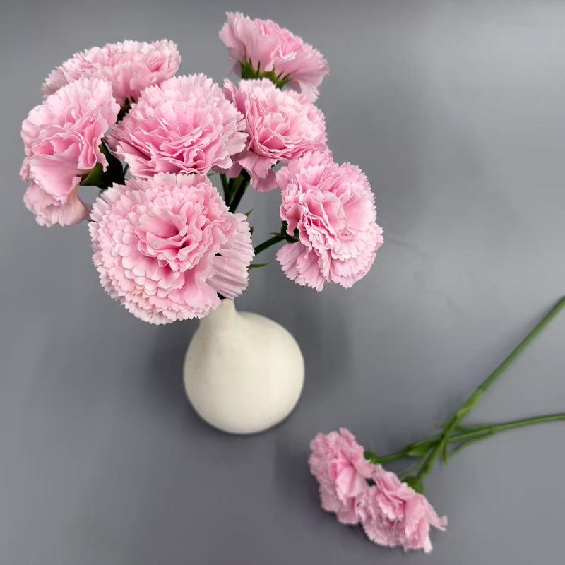Short Stem Carnation Artificial Silk Flower Bouquet - Hand-Feel Moisturizing Floral Decor for Living Room Tabletop Arrangements