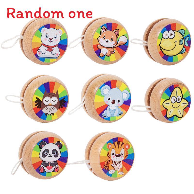 This wooden yo-yo features a sturdy, natural beech wood construction. Its smooth surface and vibrant cartoon animal design make it suitable for children's play and developmental activities. The classic non-electric toy supports hand-eye coordination and fine motor skills.