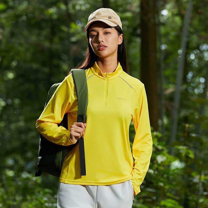 YX-2023 Autumn/Winter Quick-Dry Couple's Stand Collar Long-Sleeve T-Shirt with Thin Fleece - High Elasticity Men's Style