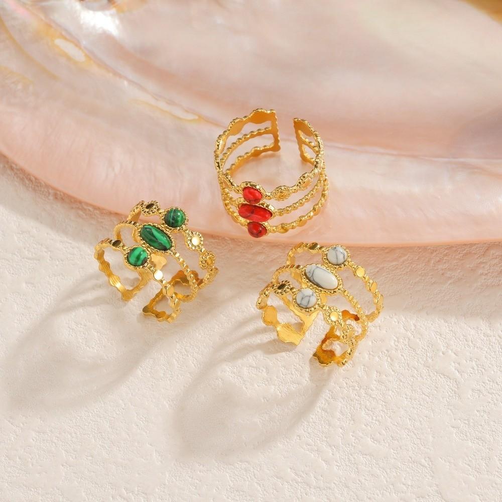 Classic Stainless Steel Ring Gold Stone Ring Fashion Hollowed Out Ring for Men Women
