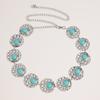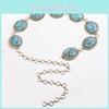 This metal waist chain features large turquoise accents and rhinestone embellishments, delivering a striking bohemian and courtly style. Crafted from durable metal, ideal for adding elegance to various outfits. Suitable for all seasons, it enhances formal or casual looks. Wipe clean with a damp cloth to maintain its shine.