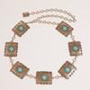 Bohemian Style Artificial Turquoise Metal Waist Chain With Vintage Finish For Women