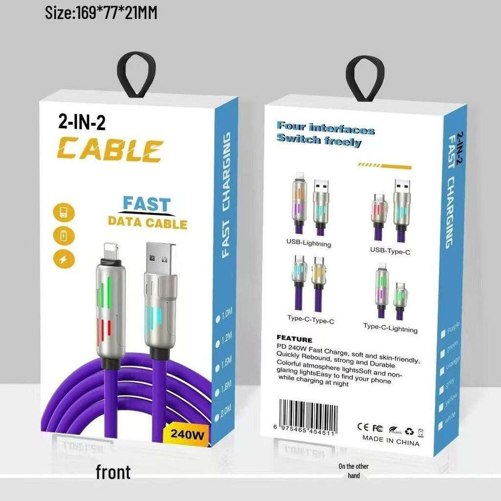 Light Column 240W, 4-in-1 Charging Cable, PD 20W, Dual Type-C & Apple Compatibility, Fast Charging & Data Transfer.