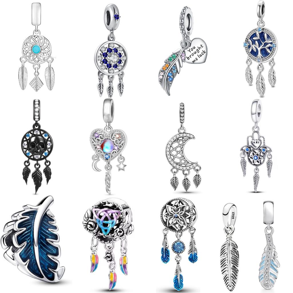 New copper Dreamcatcher Feather Charm Of Bracelets Beaded Compatible With Authentic Bracelets Accessories Do It Yourself Ladies Jewellery