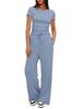 Elevate your wardrobe with this chic two-piece casual set crafted for women in 2026. The set features a ruffled short-sleeve top and wide-leg pants, both designed with a solid pattern and adorned with stylish patchwork and quilted detailing. Made entirely from high-quality polyester, it offers durability and comfort, perfect for effortless everyday wear. The casual style ensures versatility, allowing you to dress it up or down for any occasion.
