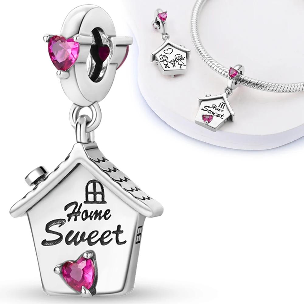 Charm Bead Charms copper Happy Home Pink Heart Bead Charms Compatible With Charm Bead Charms Plata Authentic Bracelets Bead Charms Women Jewellery Mak