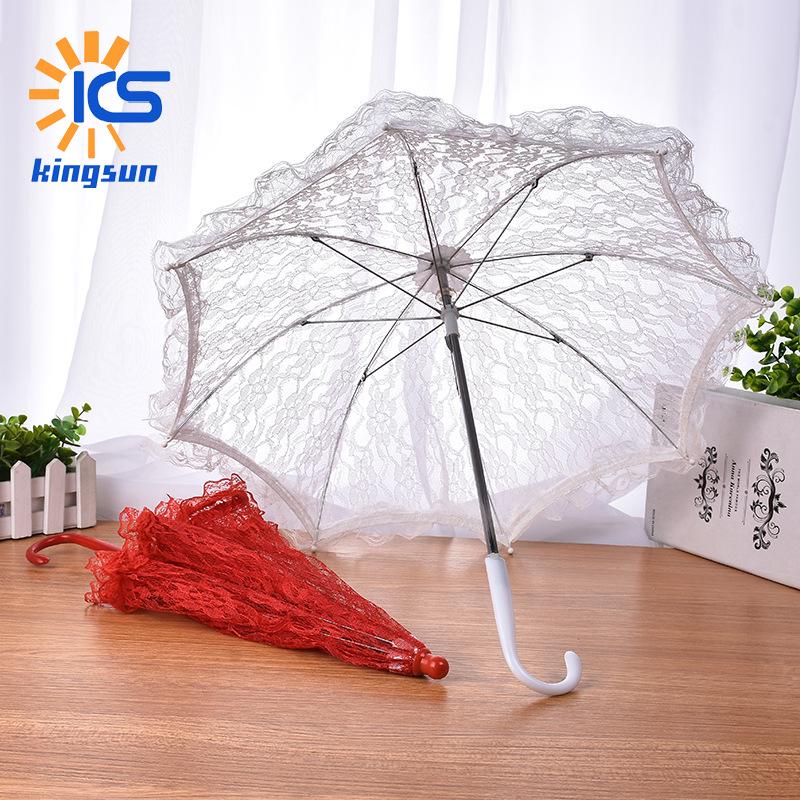 European White Lace Wedding Flower Girl Umbrella - Small Size with Stainless Steel Long Handle.