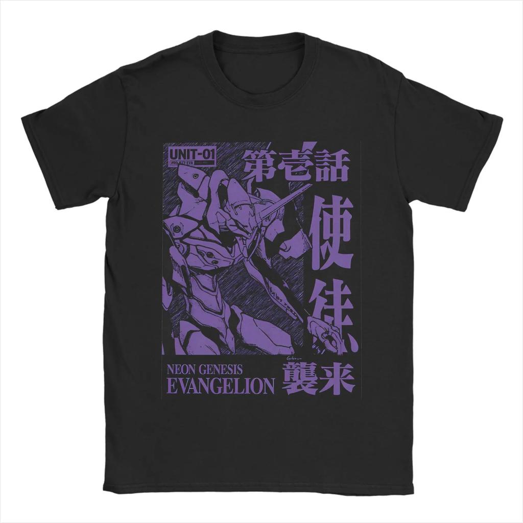 Neon Genesis Evangelion Einheit-01 Episode 1 "Engel-Angriff" Manga-Stil Lila Druck Übergroßes Schwarzes T-Shirt | Klassisches Mecha Anime Fan Merch Tee