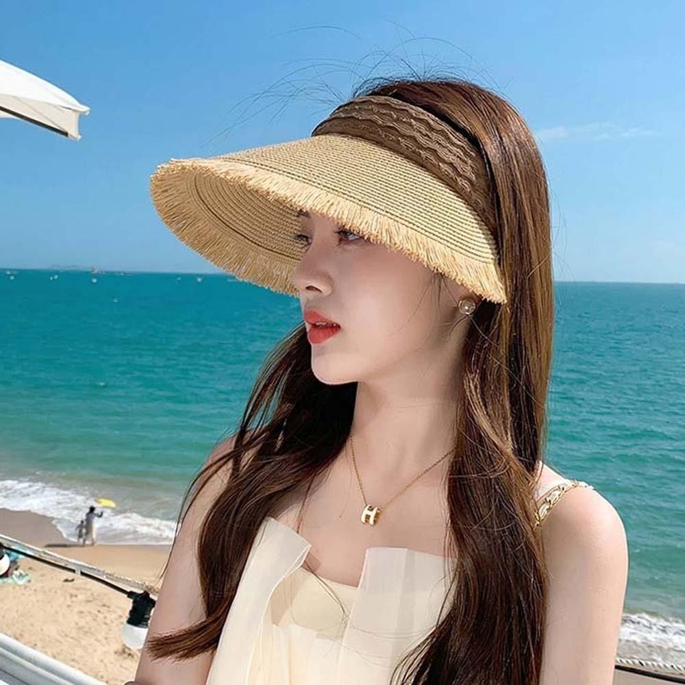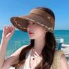 Portable Straw Visor Cap Breathable Folding Sunshade Hat Wide Brim Woven Cap Spring