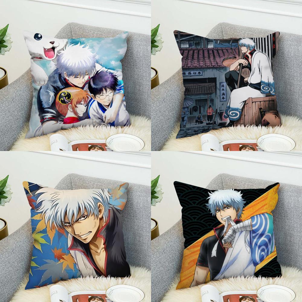 Gintama Animationskissenbezug für Auto Sofa Dekoration Zuhause Zweiseitiger Druck Plüsch Quadratisch Wurfkissen Kissenbezug