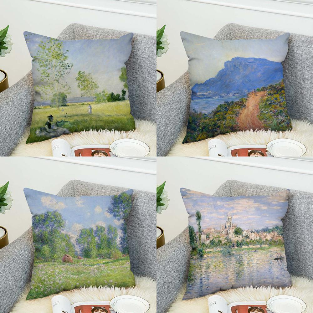 Claude Monet Art Pillow Case For Car Sofa Decorative Home Doublesided Print Plush Square Throw Pillow Cushion Cover