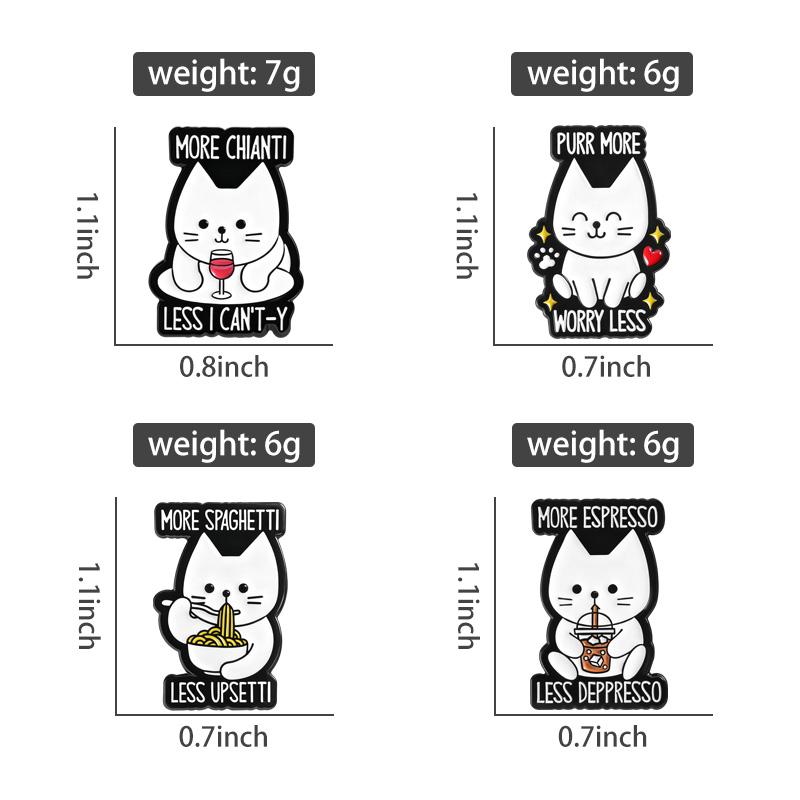 Ramen Wein Kaffee Katzen Emaille Anstecker Schnurr Mehr Sorge Weniger Anstecknadeln Revers Abzeichen Cartoon Tier Schmuck Geschenk für Kinder Freunde