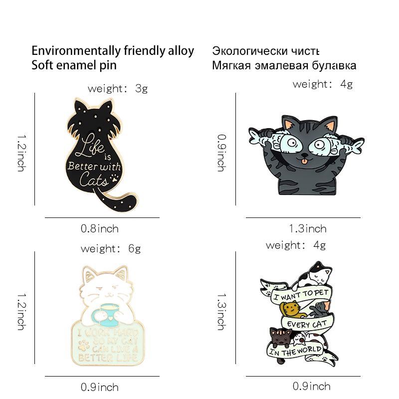 Das Leben ist besser mit Katzen Emaille-Pin Individuelle Katze Fisch Kaffee Broschen Hemd Revers Tasche Niedliches Tier Abzeichen Schmuck Geschenk für Kinder