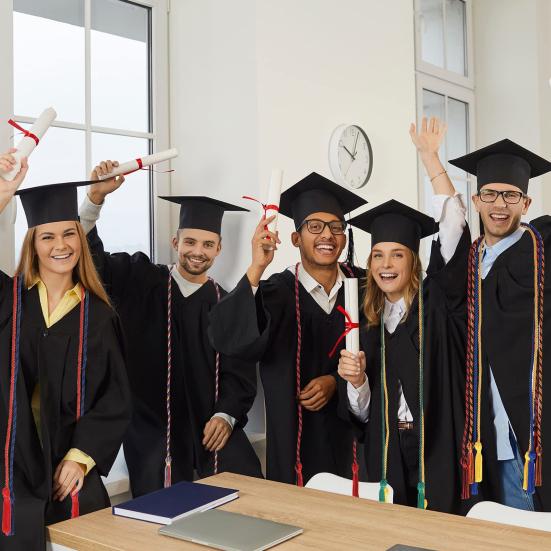 Feiern Sie akademische Leistungen mit dieser handgewebten Abschlusskordel, gefertigt nach traditionellen Techniken für eine dichte, strapazierfähige Struktur.. Die präzise Webart sorgt für eine stilvolle und gleichzeitig bequeme Passform, während die beidseitigen Quasten Eleganz und Bewegung verleihen..