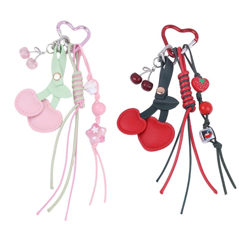 Eleganter Kirsch Schlüsselanhänger Taschenanhänger Praktischer geflochtener Seil Schlüsselhalter Taschen Anhänger Stilvolles Geldbörsen Accessoire Für Frauen