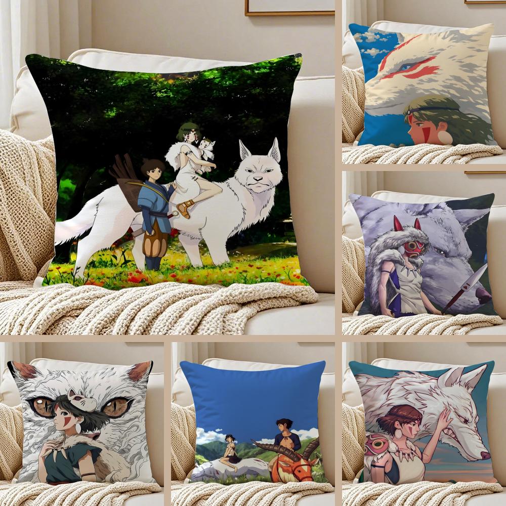 Fantasy Japanischer Anime Prinzessin Mononoke Kissenbezug Staubmilbenresistent Unsichtbarer Reißverschluss Kurzer Plüsch Sofakissen