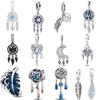 Kupfer Inlay Zirkon Feder Charm Perlen Charms Perle CZ Mond Traumfänger Anhänger Kompatibel mit Authentischen Pandora Armbändern Halsketten DIY